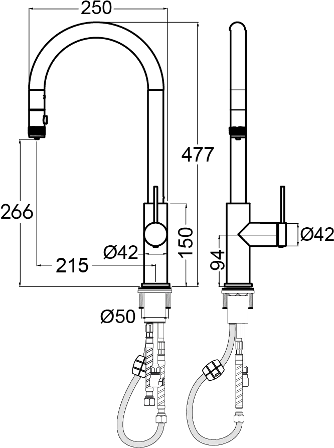 Смеситель в современном стиле GALANT с функцией подключения фильтра питьевой воды и выдвижным изливом. Подача очищенной воды включается кнопкой на конце излива. Излив выдвигается на расстояние до 60 см, что позволяет наполнять питьевой водой емкости рядом с мойкой. Кроме того, выдвижной излив облегчает уход за мойкой, позволяя ополоснуть каждый ее уголок.